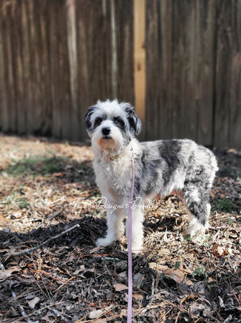 Bonnie is a gorgeous Blue Merle F1 Toy Aussiedoodle from my 2023 Twila & Zeke litter "The Stars." Her mom has been retired so I'm beyond elated to continue her legacy through Bonnie. She ranges from 16/18 lbs and is right under 15' at the withers.